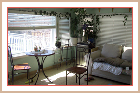 We then installed new bamboo styled shades, added new furniture, a bamboo rug and accessories. The end tables were originally from the sunroom and the arts & crafts lamp was found at an antique show. This sunroom is now inviting and relaxing.