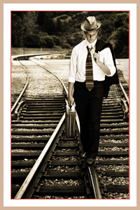 For example, take this photo to the right, we see a man with a brief case walking down some train tracks. If this was your inspirational piece for a living room, you could install hardwood flooring (like the wood in the tracks), metal a metal picture frame (like the metal in the tracks), add striped throw pillows (like the man’s tie), a boquet of flowers in a clear vase with rocks on the bottom (under the tracks) and sepia toned artwork to finish the room. You could also add some old luggage for dĂ©cor items. It’s amazing what can spark an idea.