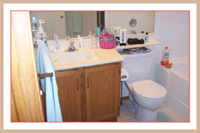 Remember to clear off your bathroom counter tops when selling your home. Help freshen up the room and make sure there are no unpleasant odors by cleaning your toilet bowl and tank, sink, taps, vanity, mirrors and walls. Make sure the toilet seat is down!