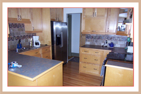 ![]() After: By clearning the countertops and adding some colourful fruit to the countertops,this kitchen is ready for sale. – Sunroom – Dining Room – Office – Bathroom |