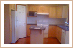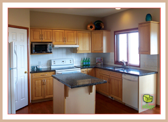 After: The green pears and green Perrier water bottles help to showcase an active healthy lifestyle in this kitchen.