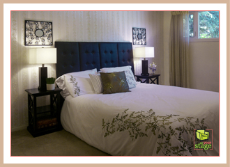 Take the bedroom in the photo as an example. On its own, the wallpaper is somewhat tired and traditional feeling. By adding a modern headboard, lamps, art, and bedding, all of a sudden, the wallpaper seems to add a sophisticated backdrop to the room. The potential buyer notices how the room feels overall, not the detail of the wallpaper.