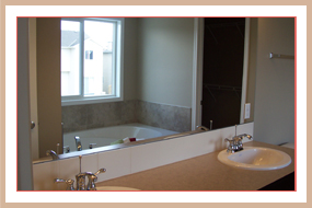 After: By continuing the blue and greens from the master bedroom into the master bathroom a relaxing, spa-ish ambience is achieved.