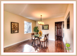 Take these rooms I staged in two different houses in Calgary. In one photo, the dining room was set up as just that; a spacious, bright and modern dining area for entertaining guests. This was in an area where young families would likely be buying. |